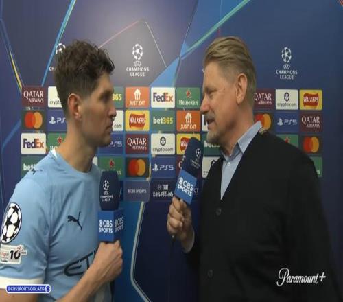 本賽季歐冠聯賽階段第4輪,曼城主場4-1戰勝多特蒙德。曼城后衛斯通斯接受了CBS體育的賽后采訪。