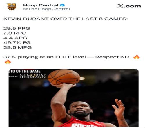 休媒:37歲的杜蘭特就是聯(lián)盟歷史最偉大的球員之一。